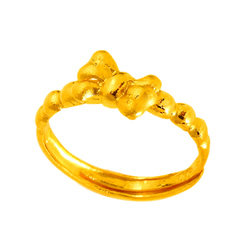 (3):由于24K黄金戒指是千足金而千足金的纯度高,所以饰品的硬度也比较低。在佩戴这些首饰时要格外小心,尤其像可调适的戒指和手镯等,经常调节大小会出现折痕,应避免左右拉扯戒环。