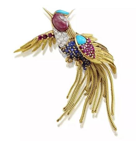 红宝石,蓝宝石,绿松石配钻石别针 byChaumet
