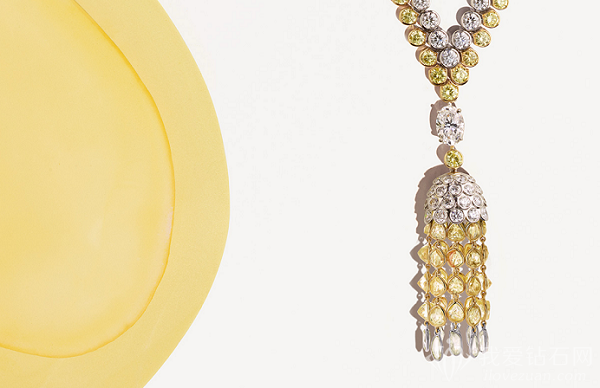 diaoyusecaimingliangshanshuo,guangmanglaiziyulinzhongqiangliefanguangdeweixijingti,yulincengdiepailie,shanlianggengweituchu。dianguangdiaoyugaojizhubaozhuyaoyicaihuangzuanjihuangsetianranyuanzuandazao。huangzuanyushanyaobaizuanjiaoxianghuiying,zaijifushangyingshechucanranhuimang,wanrulinlinboguang。
