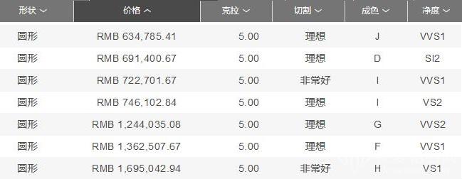genjuyishangbaojiabiaokeyikandao,meiyigedengjidebutongdouhuiyingxiangdao5kelaluozuandezhengtijiage,congjishiwanyuandaoshangbaiwanyuan,zheixiejibiebutongde5kelaluozuanyimanzubutongxiaofeizhedexuqiu。
