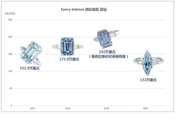 近年来浓彩级别蓝钻每克拉拍卖价格