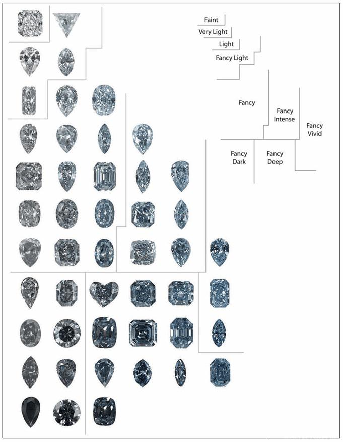 一为:Fancy(彩级别),Fancy Intense(浓彩级别),Vivid(艳彩/鲜彩级别)