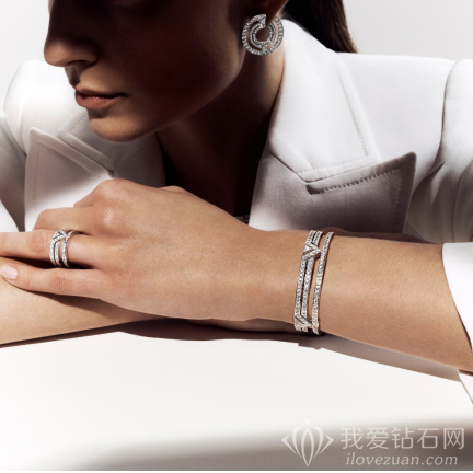 路易威登以V字为灵感,推出全新Pure V系列高级珠宝作品,独特结构感为品牌字符 V 带来当代感。以白金、钻石和玛瑙将品牌标志镌写于肌肤之上,演绎既优雅、前卫,又不减佩戴时的舒适感。