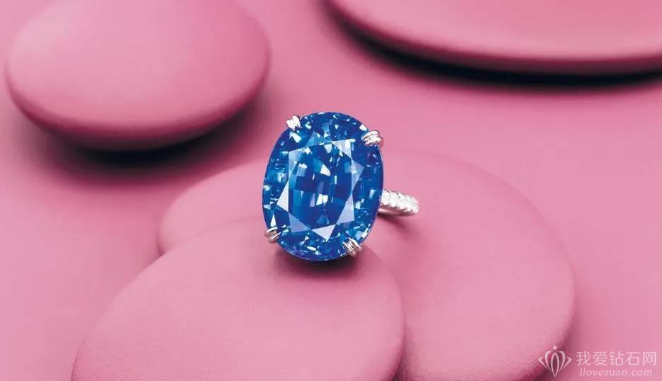 椭圆形蓝宝石重约38.10克拉,产自斯里兰卡,未经加热优化,配镶钻石。