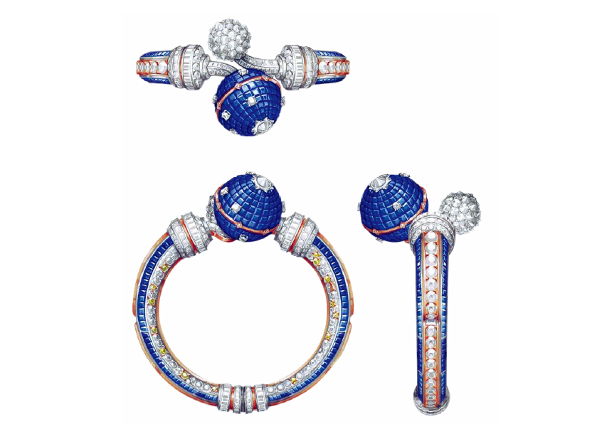 tianwenxuejia、zuojiaheyishujiashubainianlaiduiyuzhouxuxurushengdimiaohui,qidilevan cleef & arpelsfankeyabaodeshejishi、baoshixuejiahegongjiangduixingkongwuqiongdehuanxiang,yanyibianhuandefengfuzuopin,tixianshijiadejingdianchuanchengyubujiechuangyi。
