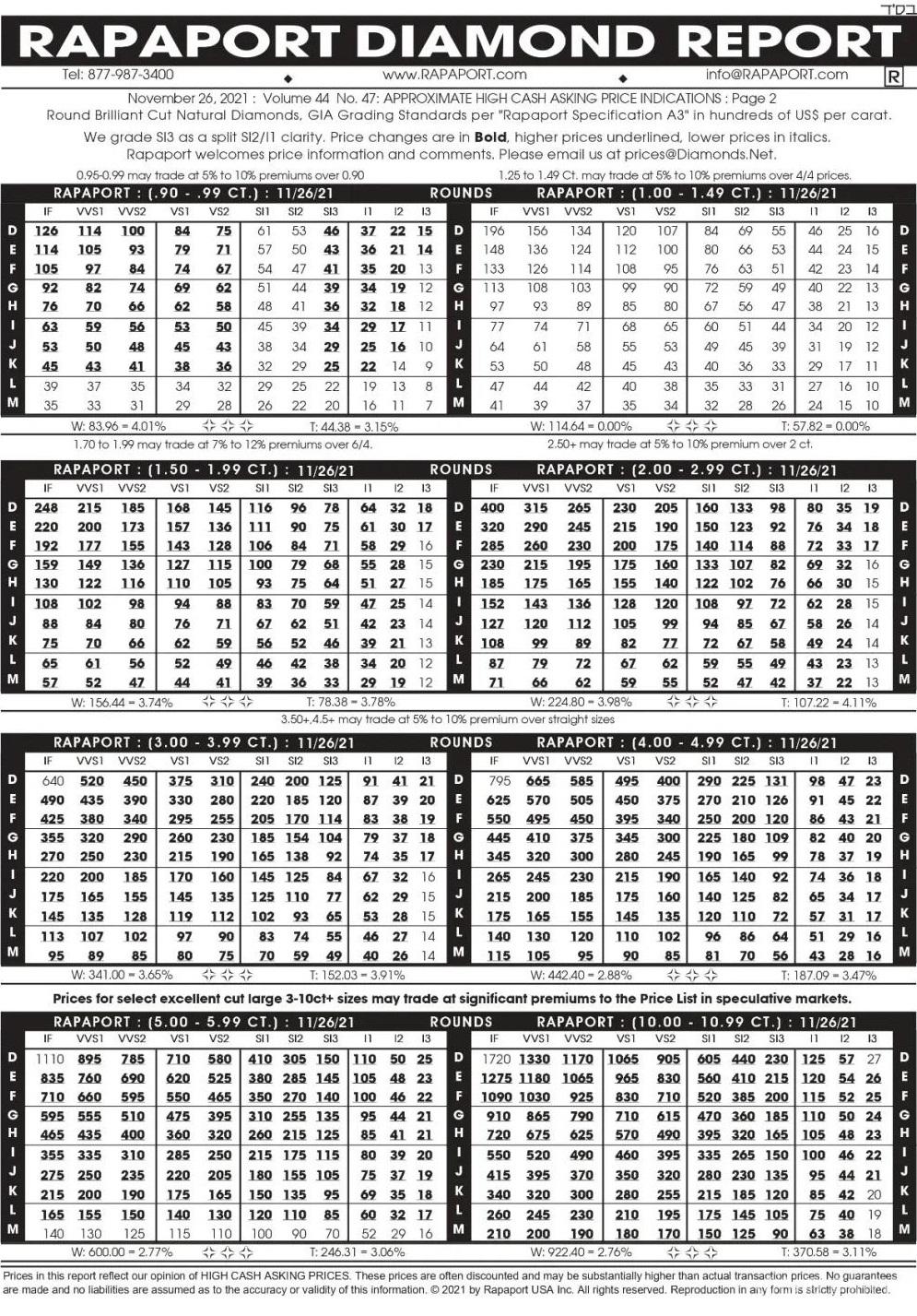 2021年11月26日最新Rapaport钻石报价表(图文)