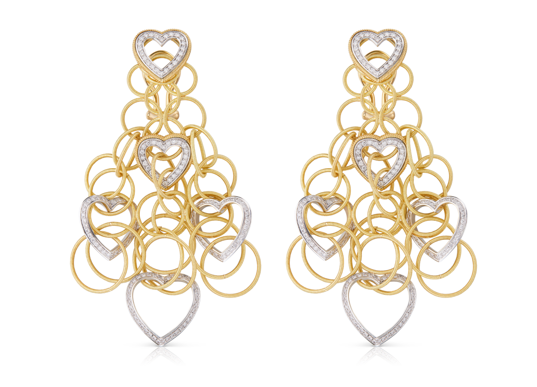 buccellatibuqilatihawaii diamond heartsxilie,zuopinshejikezhuisuzhishangshiji30niandai,lingganyuanzixiaweiyihuahuan。qizhongdehuangjinyuanhuanyoujinxianshougongchanraoercheng,biciqingyingjiaozhi。zuopinshangshiyouxiangzuanbaijinxinxinghuan,congeryingzaochujingzhidecengcigan,qiaomiaochuandijieriyiqu。