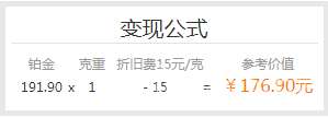anzhaojinrikejia(191.90yuan),mouzhuanyehuishouwangzhandept950bohuishoubianxiangongshiwei:191.90(pt950bojindanjia)x1(kezhong)- 15(zhejiufei/ke)=¥176.90yuan(cankaohuishoujiazhi)。