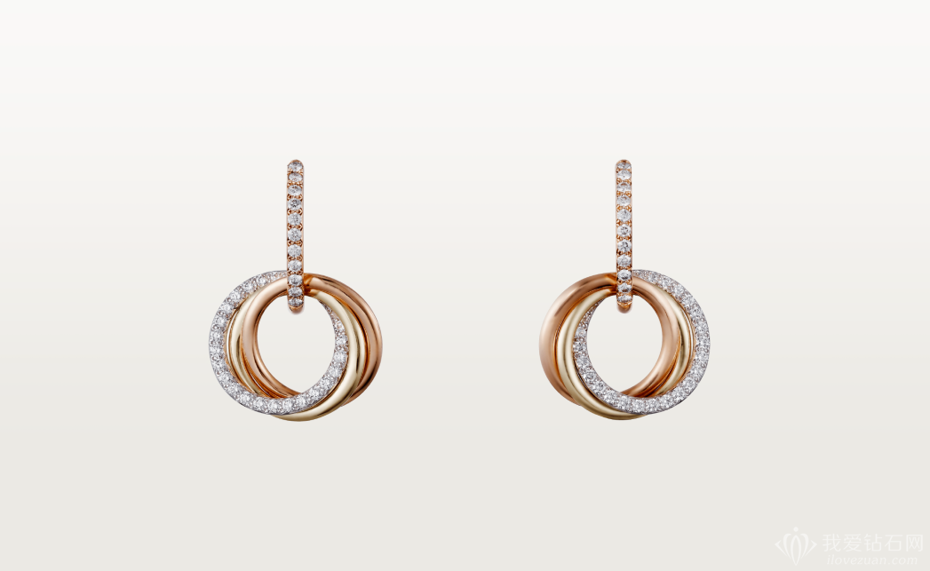 trinity xiliesanmeiyuanhuanjiaozhi,chengxianmeiguijin、huangjinhebaijinsanzhongcaizhi,fenbiexiangzhengai、zhongcheng、youyi。zheikuantrinity xilie18kjinzuanshierhuan,chengxigaixiliedejingdianzaoxing,jingzhizaoxing,wenrouqianquan。
