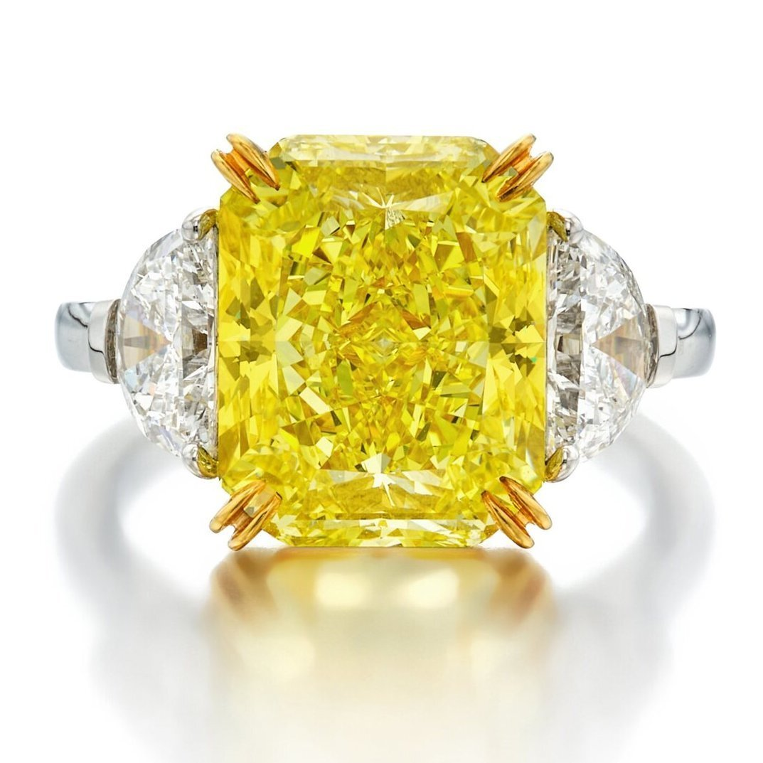 zheimeihuangzuanjiezhizhushiweiyike6.82ctqiejiaojuxinggailiangmingliangshiqiegehuangzuan,tongtitouliang,guangcaiyiyi,jing gia jiandingwei fancy vivid yellow sejihe vs2 jingdu,feichangxiyou。jiezhiliangcexiangqian2kebanyuexingqiegewusezuanshi,gengxiancuican。