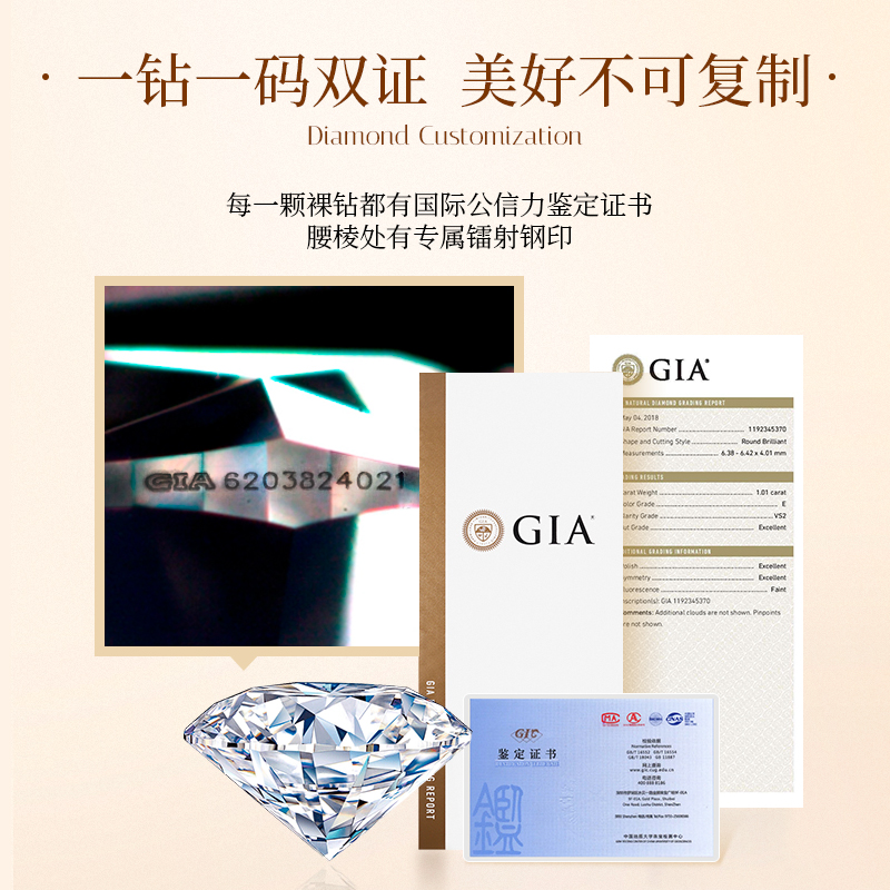 专注婚戒定制,GIA、国检一钻双证,支持复检,假一赔十!