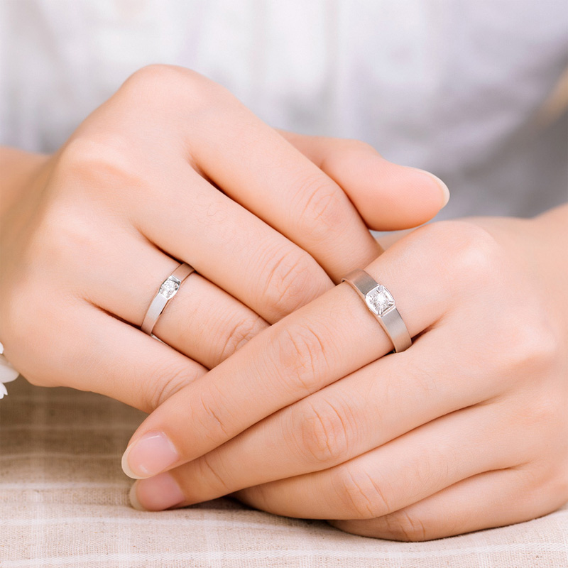 商品点评:很中性化的一款对戒,男士还可以,就是女戒感觉太中性了,老公喜欢就好,回头再单独在你家定个女戒大钻的,希望到时可以给优惠多多哦。