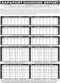 rapaport集团是一个跨国公司集团,创办于1978年的《rapaport钻石报道》是钻石价格和市场信息的重要来源,《rapaport钻石价格表》(国内俗称为《国际钻石价格表》)被全球钻石业人士用作报价基础。我爱钻石网为你提供最新rapaport国际钻石报价。