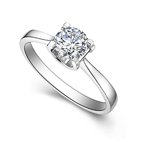 特色设计:钻戒用独特的造型展现出现代女性独立自我的特质;简单的方形四爪将钻石优雅托起;