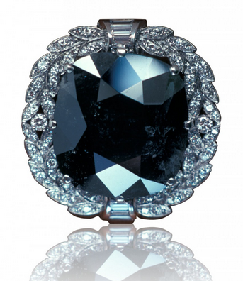 图中67.5克拉的Black Orloff 钻石也许是目前最著名的天然黑钻。它被圆形、单翻式长梯形钻石围绕,镶嵌于一枚铂金胸针上。