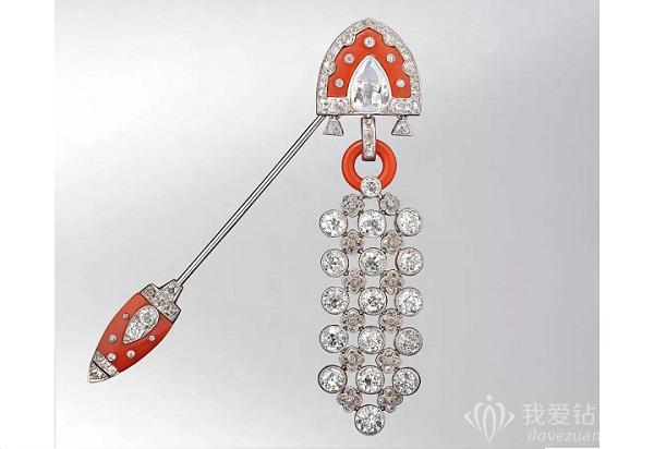 ART DÉCO风格珊瑚及钻石胸针by 卡地亚Cartier
