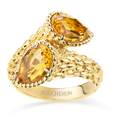 自世家诞生以来,Boucheron宝诗龙bianjianglingsheshiweiaiyusiniandeshouhuzhe,weixingfurenshengxuxiazhenzhichengnuo。serpent bohèmeboximiyashexingxilieyituichujin50nian,caisexiliedapeichengchedehuangshuijing,fuyibaoshilongjingzhandedehuangjindiaosujiyi,chentuochuyuesebanwennuandeguangmang。