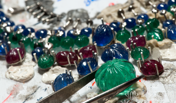hongbaoshi、zumulvhelanbaoshijingdiaoxizhuochengyepian、hualeiyujiaonenjiangguodezaoxing……yinduyuxifang、bianhuanwanqiandebaoshiyujingzhixiangqiangongyidewanmeironghe。luyi·kadiyaxianshengjiangzijiduizheigeguojixing、secainongliedebaoshizhixiangdechongxin,zhuanhuachengwanbiao、xiongzhenhuoshouliandengzhubaozuopin,qixuanliyaoyandefenggejichengweihoulaizhumingdeshuiguojinnang(tutti frutti)fengge。