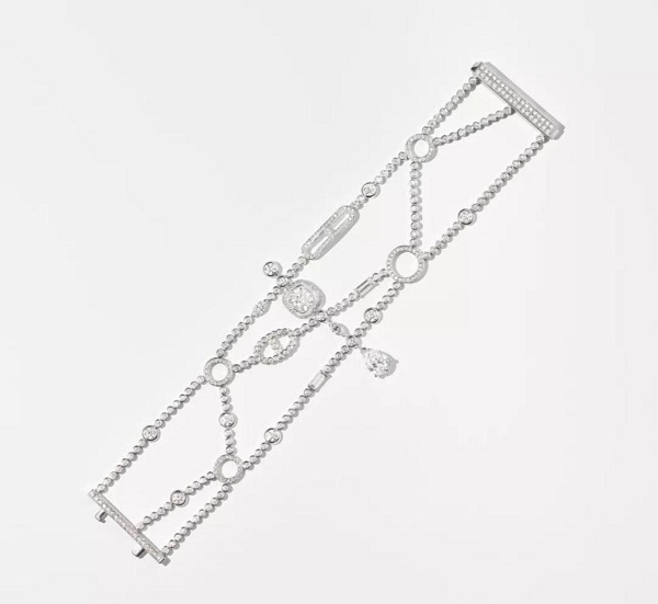 爱马仕高级珠宝系列第五篇章“流光链影”在爱马仕传统马具中的链条工艺中提取灵感,展示金属与身体的亲密对话,既突出了珠宝作品的超前风格,又保留了高级珠宝的精湛工艺,在变幻莫测的视觉与光影中尽显独特之美。