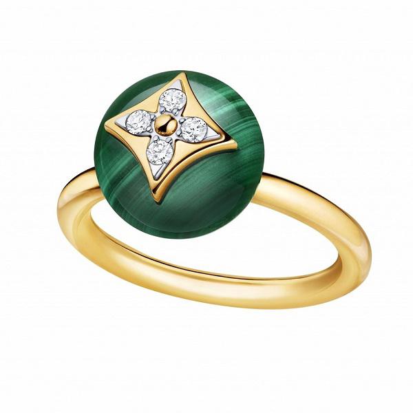 新系列最引人注意的是戒指单品——戒面设计为半球形,材质选择非常丰富——黄金、玫瑰金,或独立切割的孔雀石、缟玛瑙、白玛瑙、粉色蛋白石,呈现圆润而立体的视觉效果。半球中央以三层式结构再现四角星花纹——衬底为黄金或玫瑰金材质;中层以白金搭配4颗圆钻;顶部为一颗小金珠,形成丰富的层次感。.jpg)