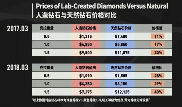 2017 nian,hechengzuanshidepingjunshoujiazhibitianranzuanshibianyi 10~20%,yinianzhihou,zheigechajuyijinglakaidao 30~40% 。renzaozuanshihetianranzuanshidejiagechajuyuelaiyueda: