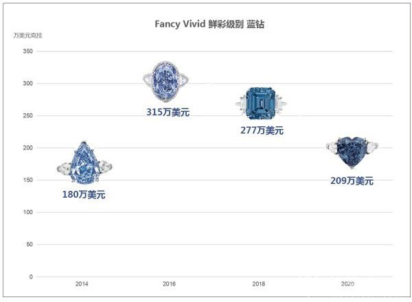 近年来鲜彩级别蓝钻每克拉拍卖价格