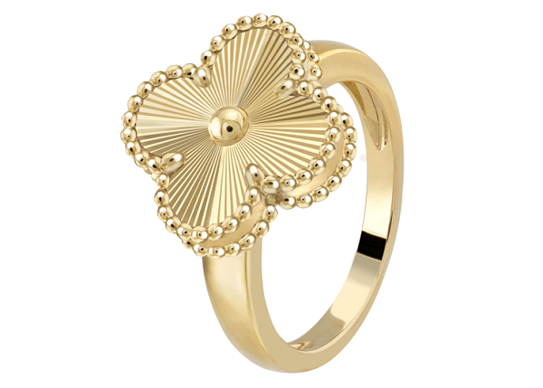 fankeyabao(van cleef & arpels)yijingzhundeqiegeliduchulitaiyangfangsheshiwen,weihuangkjinbiaomianyingkechuruoyinruoxiandefudiaoxiaoguo,guangyingliuzhuanjian,jiloudiaohuasiyexingyuntuanyiqianbianwanhuadewenrunguangzeyushensuisecaijiangxingyunyanxu,cuicanduomu。