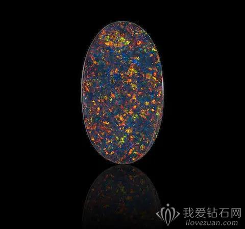 这颗欧泊是在澳洲发现的,上面闪烁着很迷幻的五彩光芒。