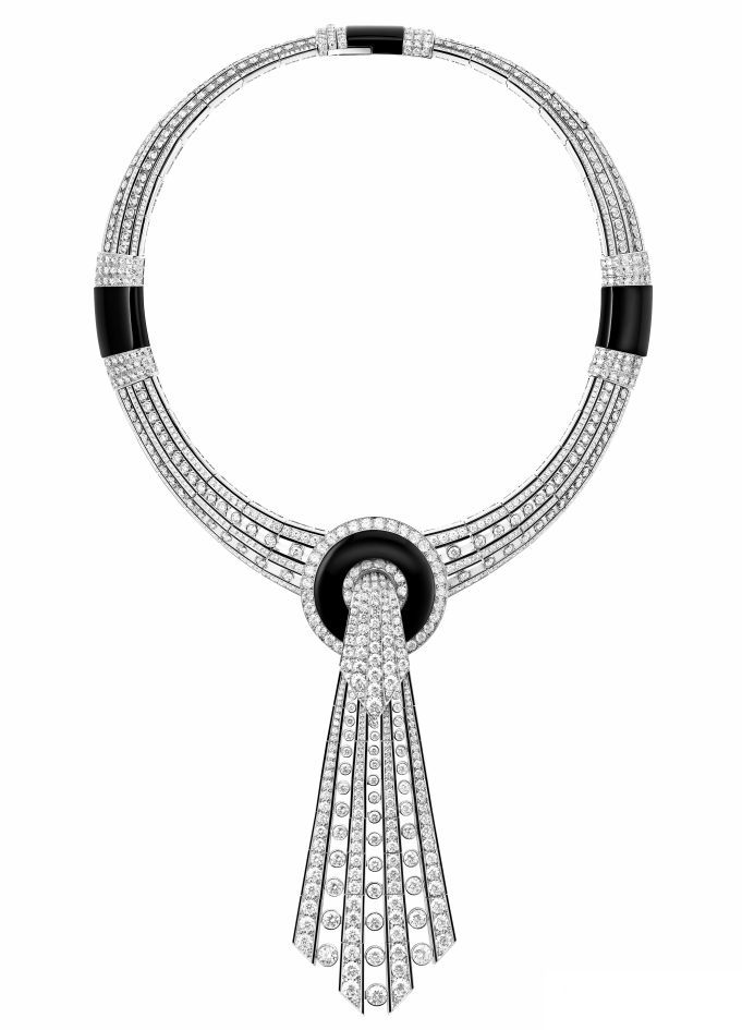 weiyudangdaigediaoxianghuying,chuangyizongjianclaire choisnexuanzefangdashizhuangjingshenhe“paoxiaodeershiniandai”(roaringtwenties)deduili,jujiaoyunvxinghenanxingqizhi、chuncuieryoufengfudexiantiao,yijizaiyimosecaichentuoxiagengxianqiangliedeheibaiduibi。boucheronbaoshilongjiangjingzhandezhubaogongyiyunyongyufuyouzhuangshiyishufenggedepiaoyiganxianglianheduandaishouzhuozhong,huashenweijijuxiandaigandeduomianchuandazhubao。