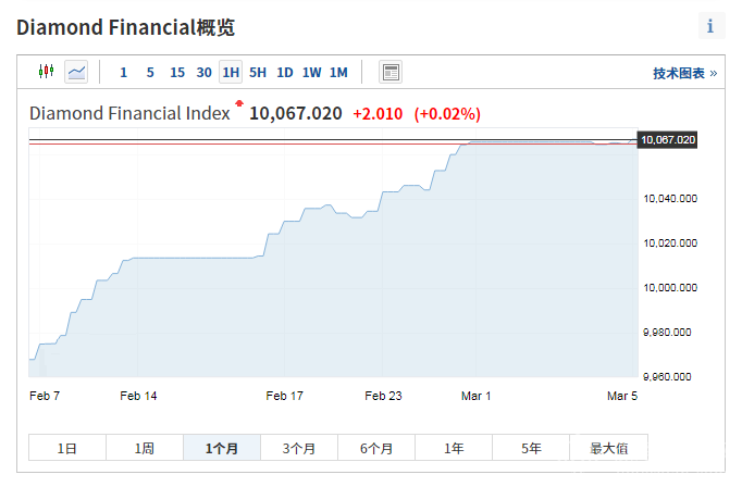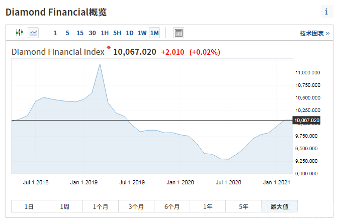 2021nian2yue,zuanshijiagezonghezhishu(diamond financial index)kaipan9,942.39,jiezhi2yue28ri,shoupan10,065.89,shangzhang1.24%,jinnianleijishangzhang2.59%。(diamond financial index yi2018nian4yuefende10,000dianweijishu)