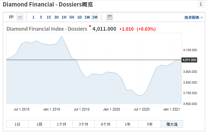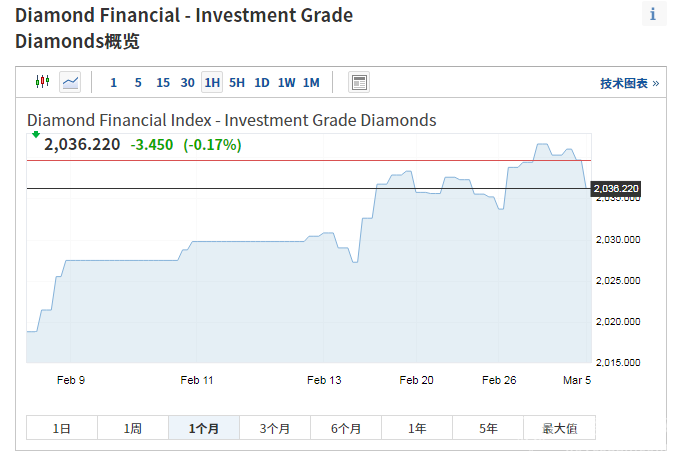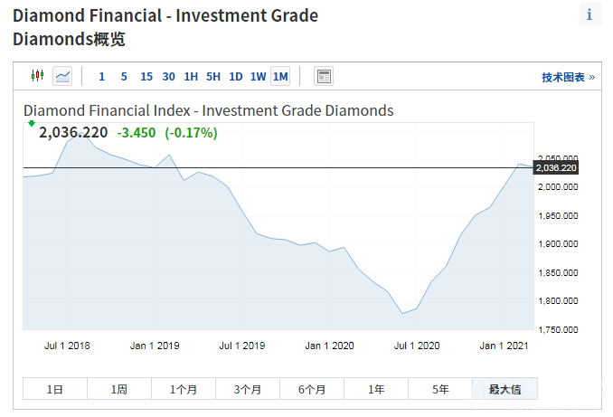 2021nian2yue,touzijizuanshijiagezhishu(investment grade diamonds)kaipan2,003.27,jiezhi2yue28ri,shoupan2,041.62,shangzhang1.91%,jinnianyileijishangzhang3.9%。