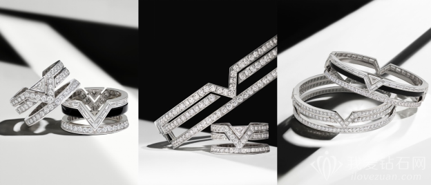 路易威登以V字为灵感,推出全新Pure V系列高级珠宝作品,独特结构感为品牌字符 V 带来当代感。以白金、钻石和玛瑙将品牌标志镌写于肌肤之上,演绎既优雅、前卫,又不减佩戴时的舒适感。