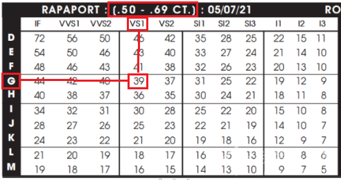那么,这颗50分钻石价格为:39(克拉单价)×100×0.50(克拉重量)=1950美元