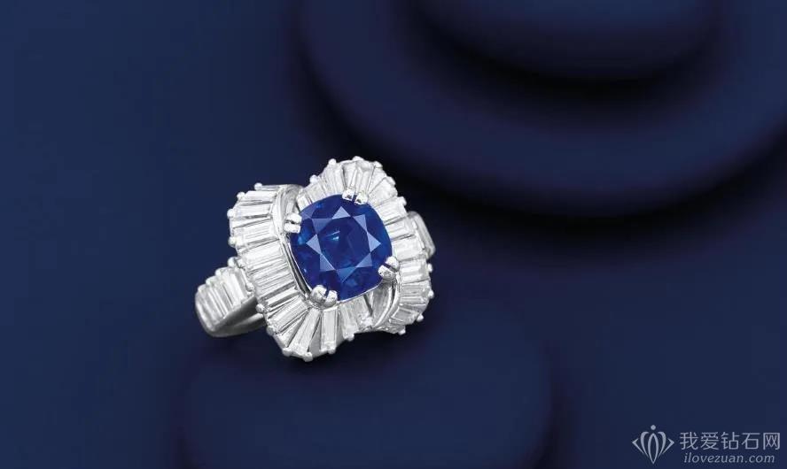 古董枕形蓝宝石重约3.19克拉,产自喀什米尔,未经加热优化,配镶钻石。
