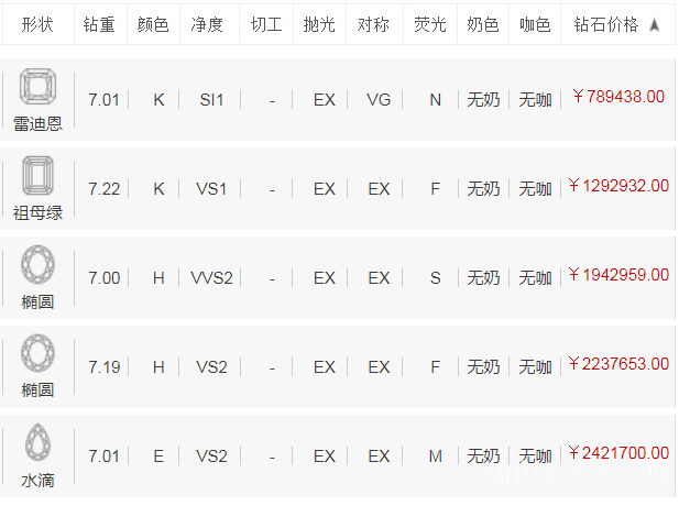yishangbiaogewei7kelazuoyouyixingzuanbaojia,zhengtishanglaishuo,tongpinzhideyixingzuanbiyuanzuandejiagegengbianyi。rutuoyuanxing、shuidixingdengxingzhuangdezuanshikanqilaiyebiyuanxingde7kelazuanshigengdayixie。