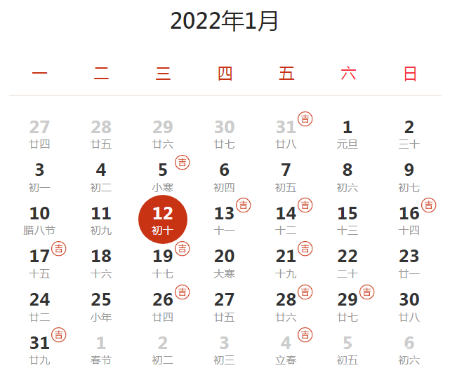 ①. 2022nian1yueshihejiehundejirigongyou11tian