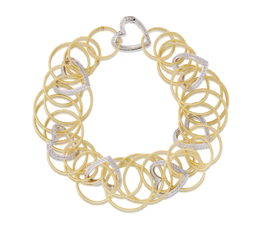 buccellatibuqilatihawaii diamond heartsxilie,zuopinshejikezhuisuzhishangshiji30niandai,lingganyuanzixiaweiyihuahuan。qizhongdehuangjinyuanhuanyoujinxianshougongchanraoercheng,biciqingyingjiaozhi。zuopinshangshiyouxiangzuanbaijinxinxinghuan,congeryingzaochujingzhidecengcigan,qiaomiaochuandijieriyiqu。