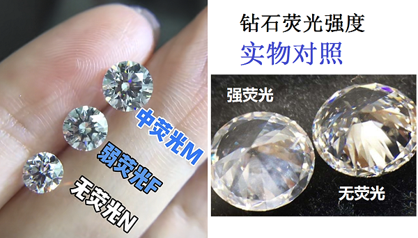 无荧光的钻石最好。强荧光的钻石表面就像覆盖了一层水蒸气,朦朦胧胧。
