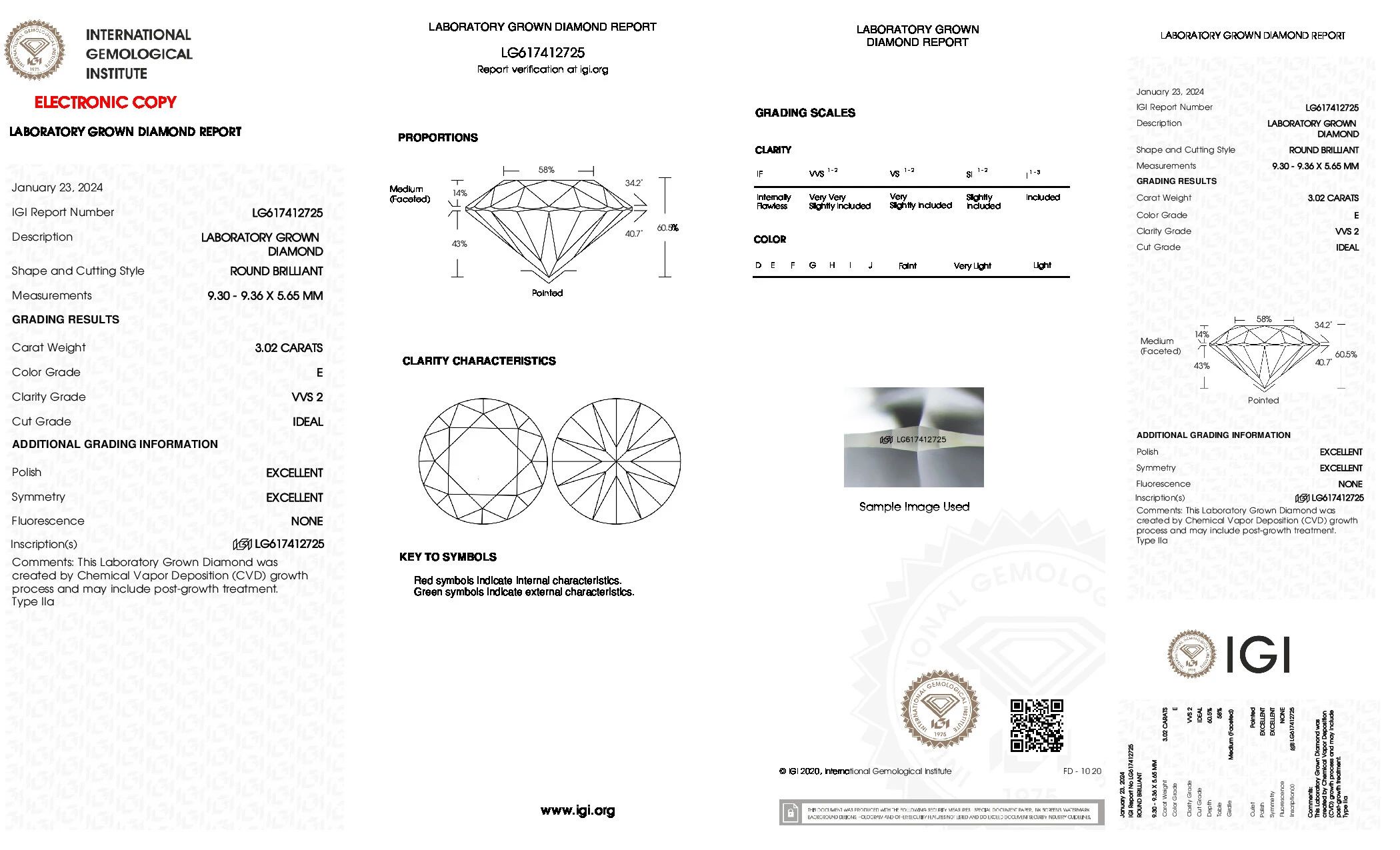 合成钻石的证书,一般来说,国内最常见的是IGI证书。GIA虽然也可以为培育钻石做鉴定,但并不提供纸质版证书。