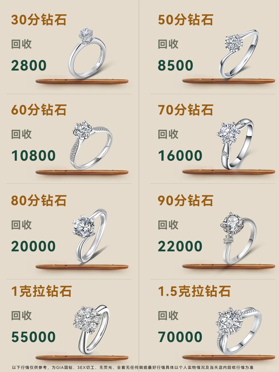 二、不同品质钻石戒指回收价格区间示例