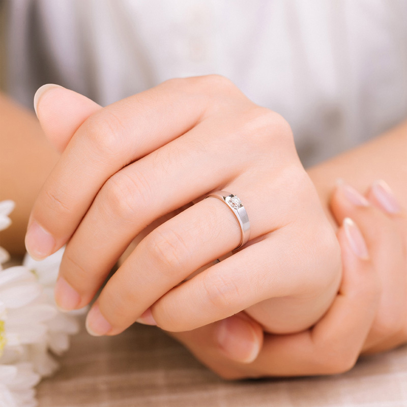 商品点评:很中性化的一款对戒,男士还可以,就是女戒感觉太中性了,老公喜欢就好,回头再单独在你家定个女戒大钻的,希望到时可以给优惠多多哦。
