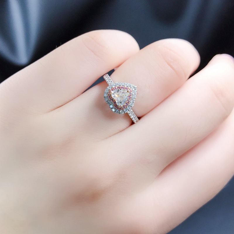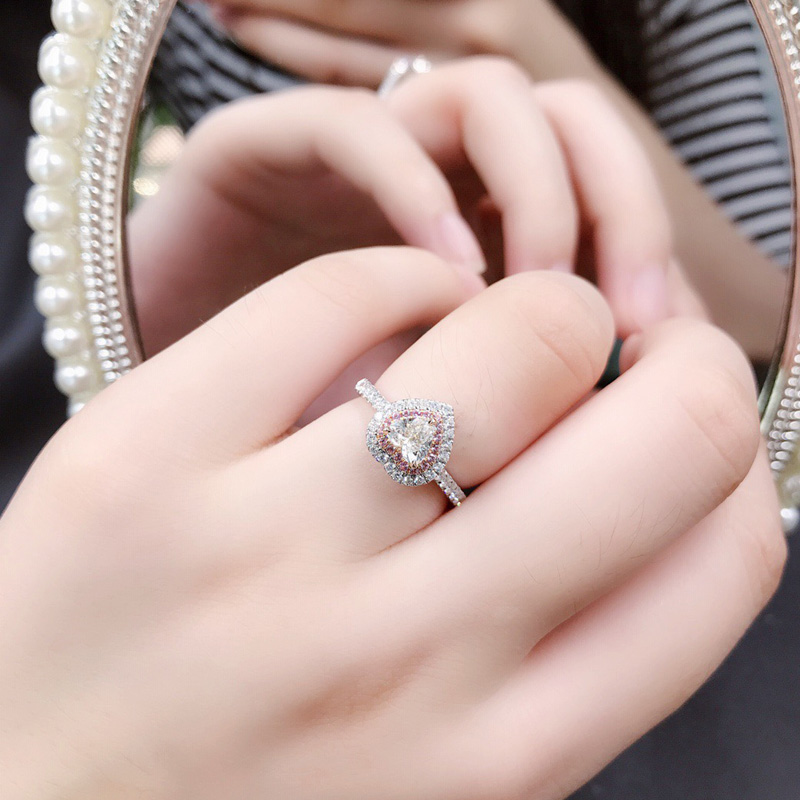 商品点评:朋友都说戒指很显钻,闪烁度很好,带点粉钻显得更加独特了,小钻石也很亮,哈哈哈没有让我失望~是GIA的证书,质量杠杠的,价格美丽。送的赠品也很喜欢