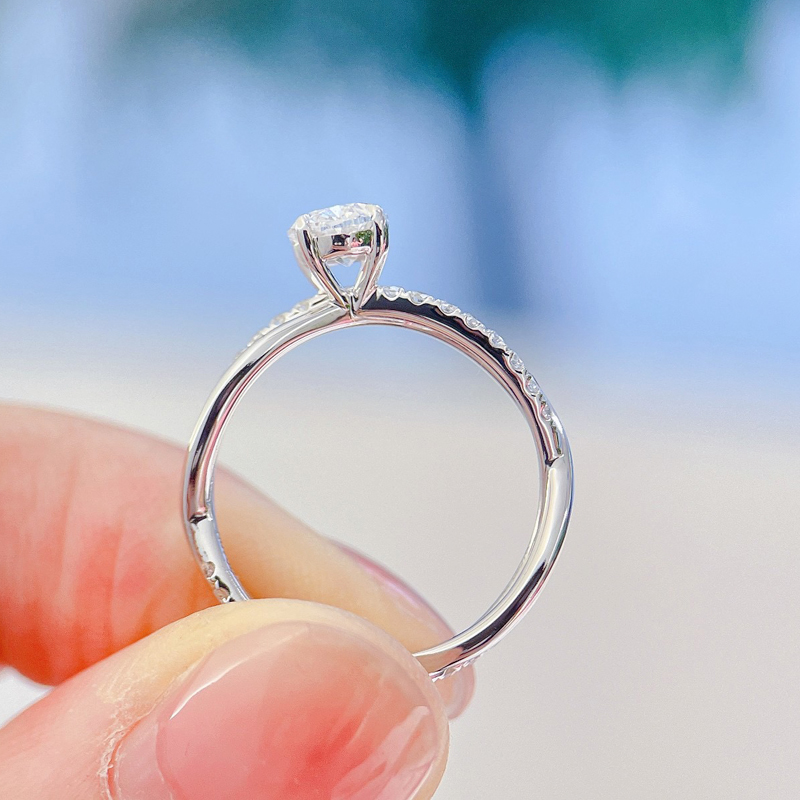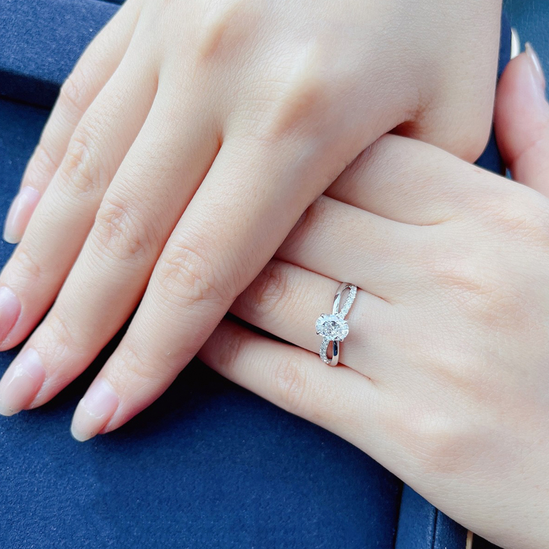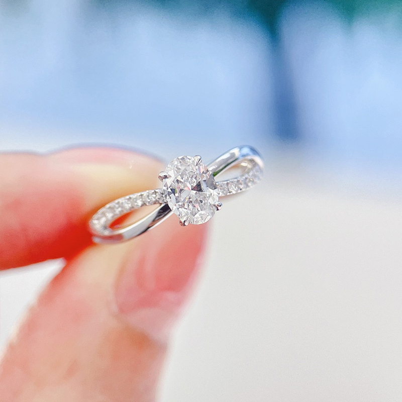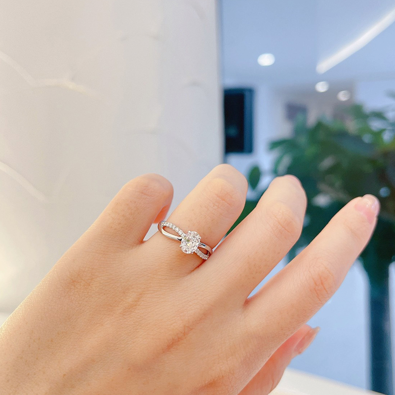 椭圆形 交叉双臂单排钻 18K金钻戒