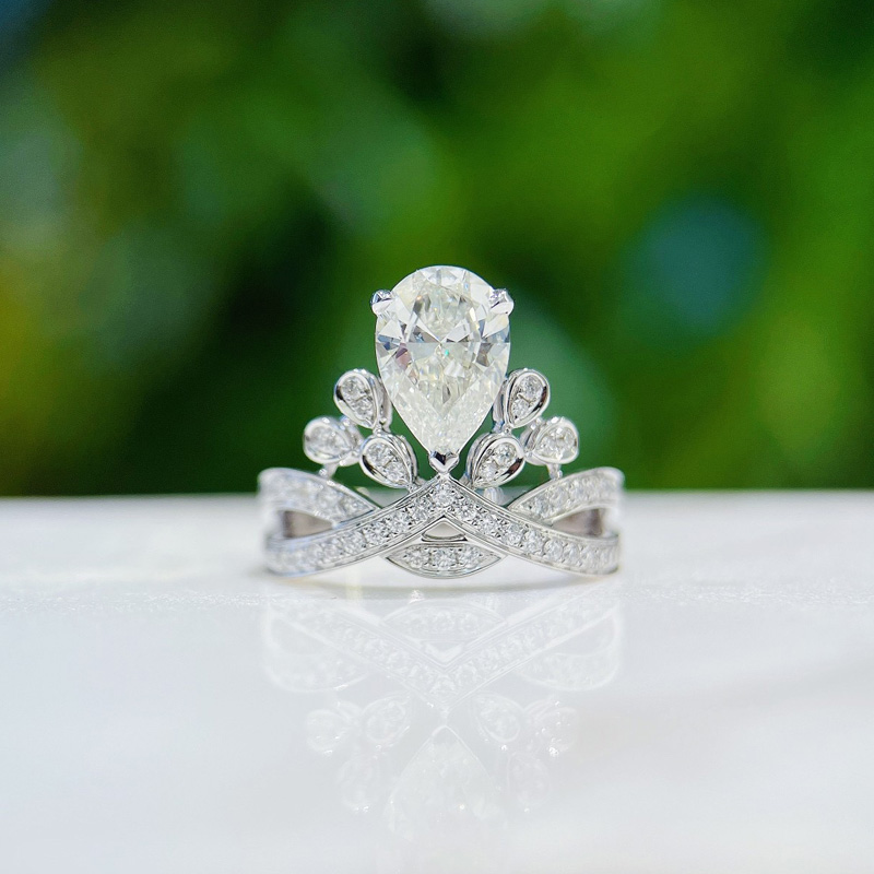 商品点评:好看好看!纪念日当天收到的惊喜,做工很精细,还带GIA证书!钻戒又大又闪,水滴皇冠钻戒很美!主要是老公给的惊喜难得哈哈,他选的款真的不错,设计寓意也好,戴在手上很高贵大气,好评!