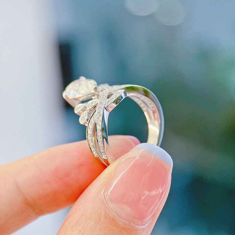 商品点评:钻石很白很闪,日光下和灯光下都很闪耀,戒指很显钻很优雅时尚,超级好看,主钻副钻都挺白的,没让我失望,很好。
